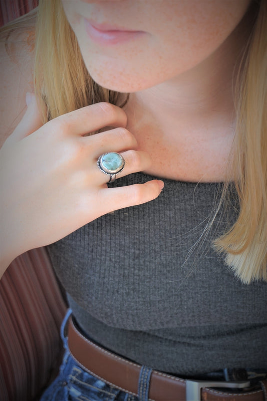 Rustic Blue Larimar Nugget in Sterling Silver Ring, Bohemian OOAK Artisan Jewelry