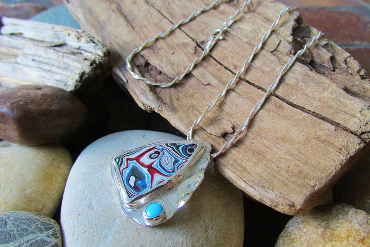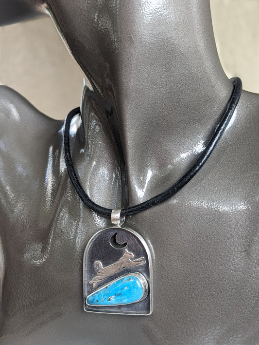 Leaping Cat Turquoise and Silver Pendant, Artisan Southwest Style Bohemian Pendant