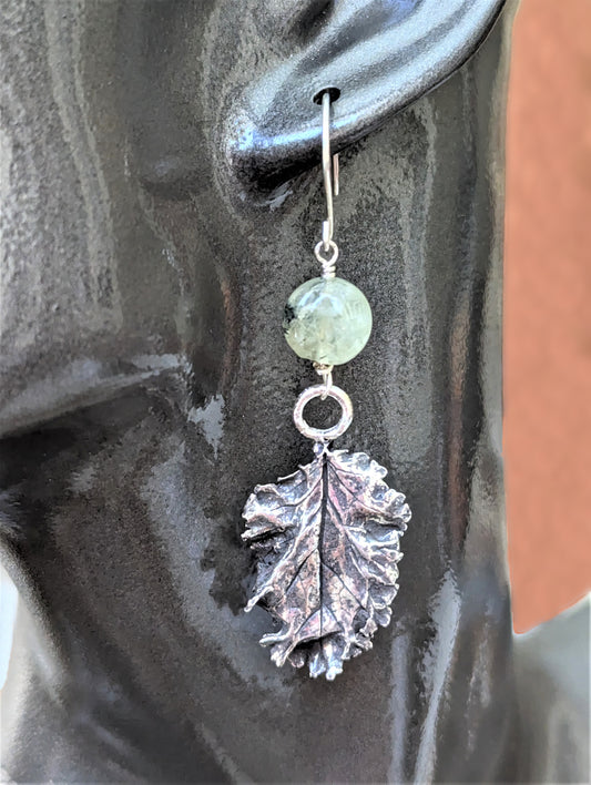Silver Baby Curly Kale Leaf with Moss Agate Dangle Earrings