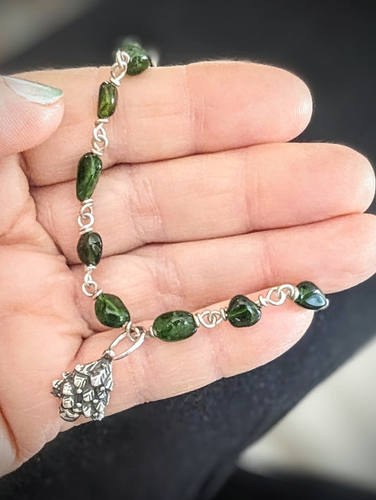 Dainty Green Gemstone Bracelet with Silver Christmas Tree Charm