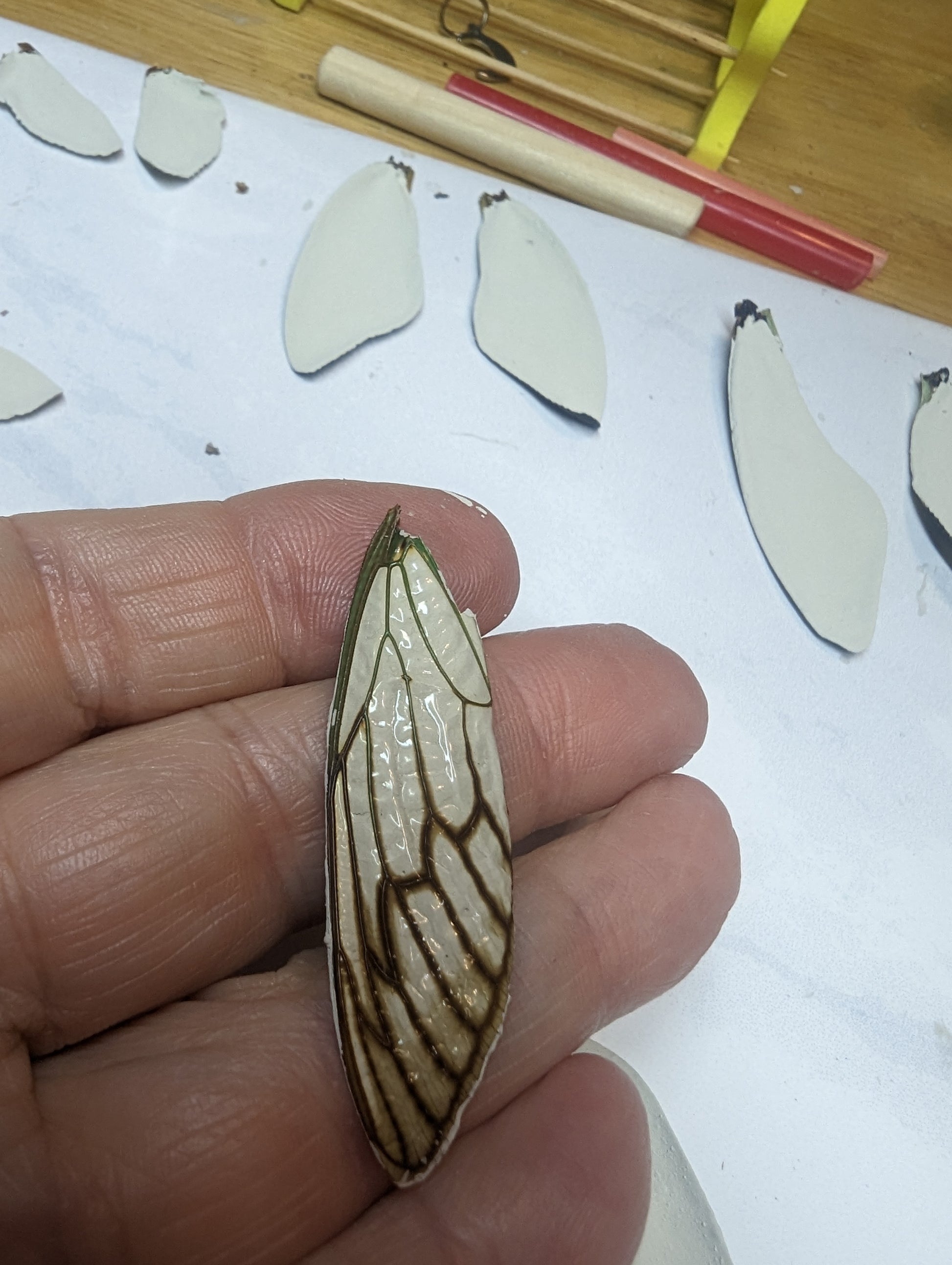 Cicada wing earrings hand crafted from real cicada wings in fine silver with faceted blue labradorite.