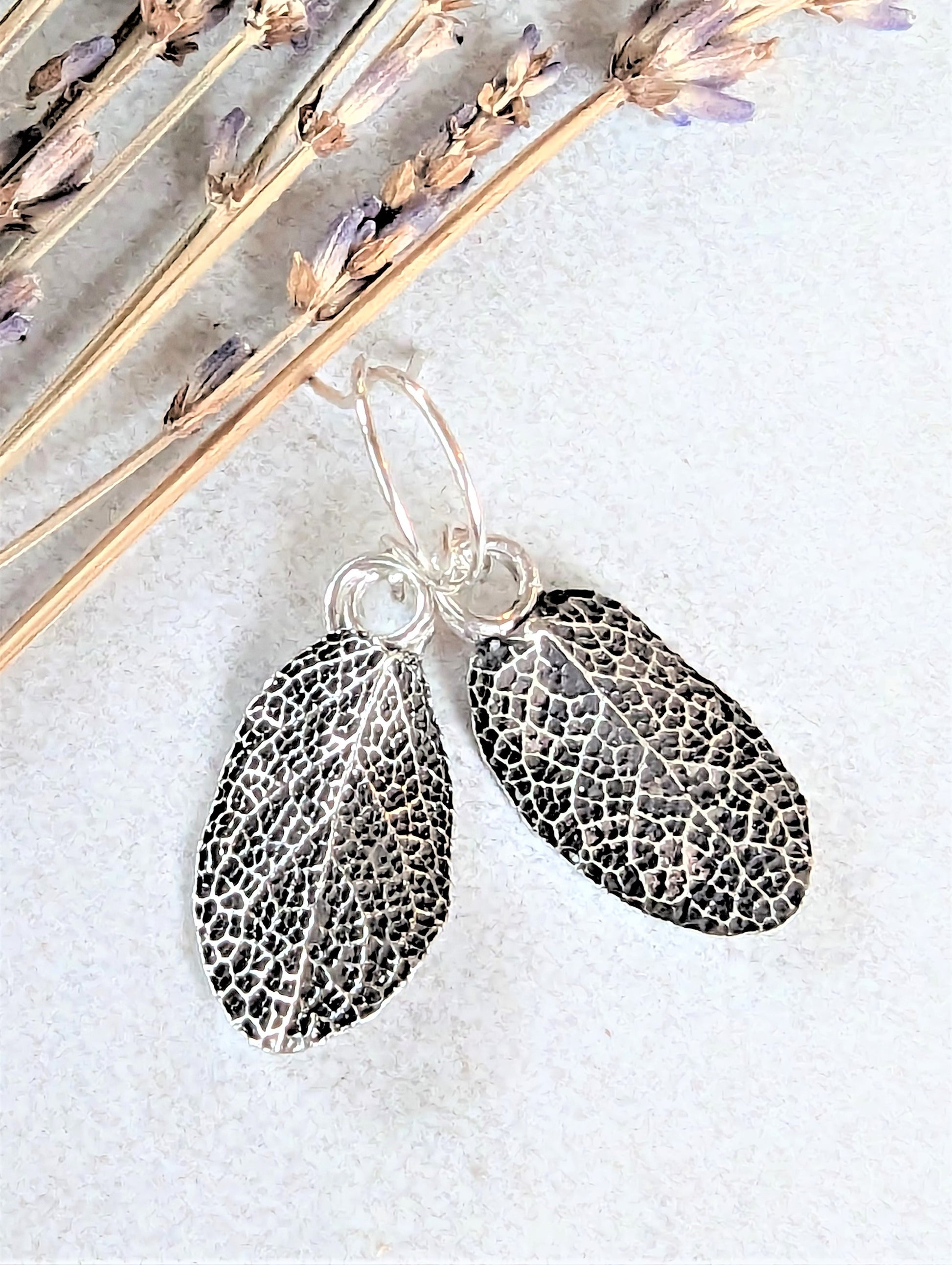 Silver Sage Leaf Earrings, Botanical Eco-Friendly Earrings, Artisan Boho Rustic Nature Inspired Jewelry