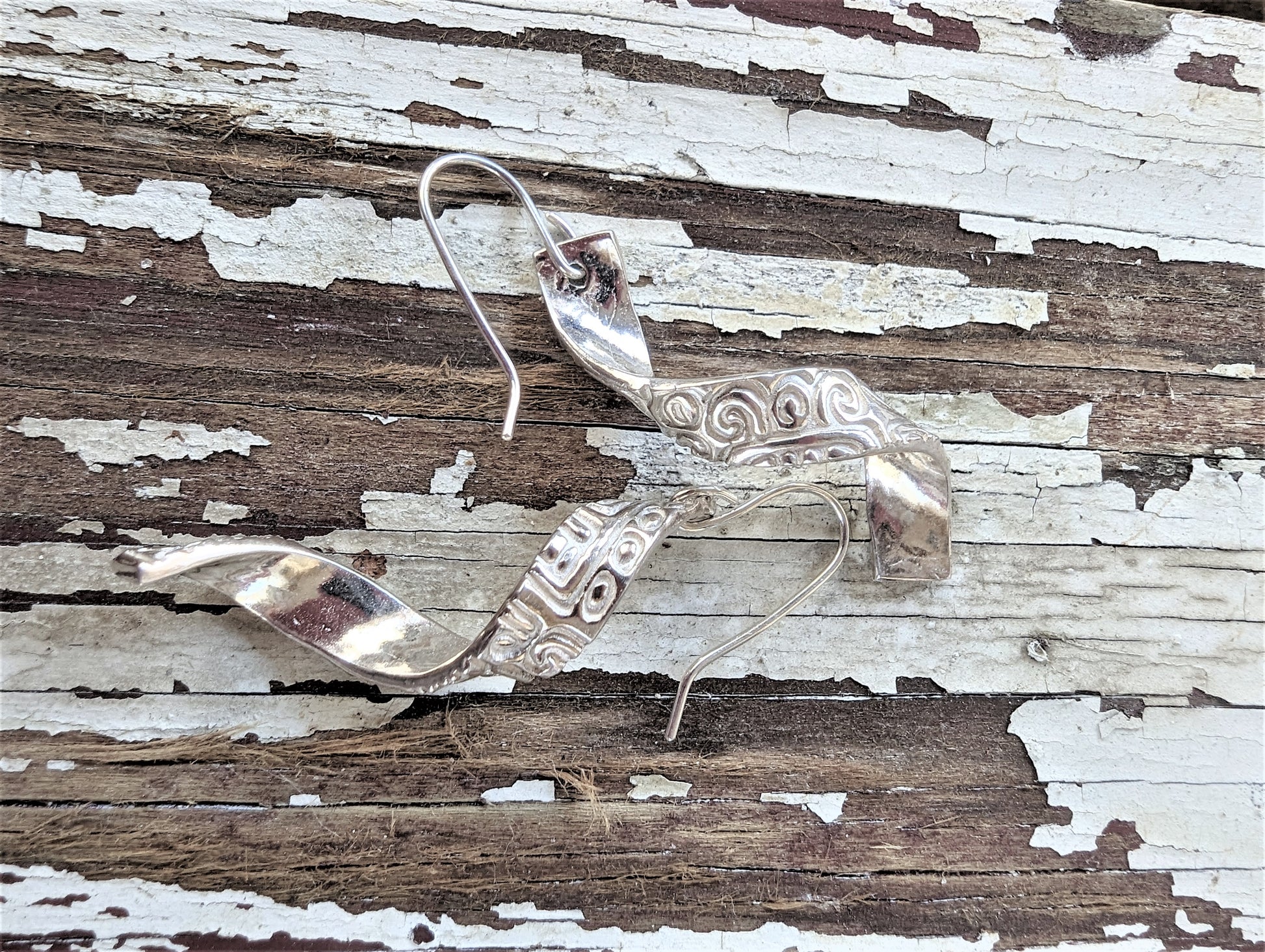 Silver Twisted Dangle Pierced Earrings, Eco Friendly Recycled Metal Artisan OOAK Jewelry