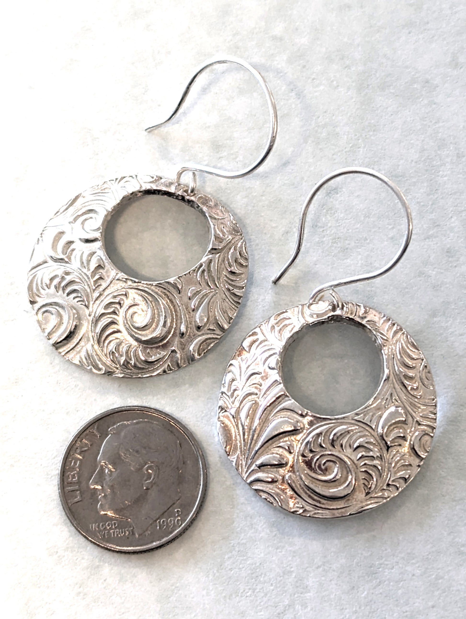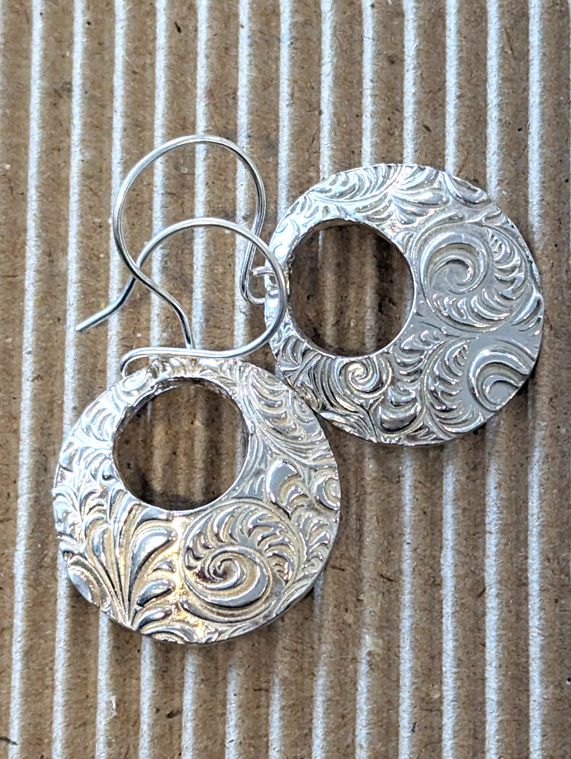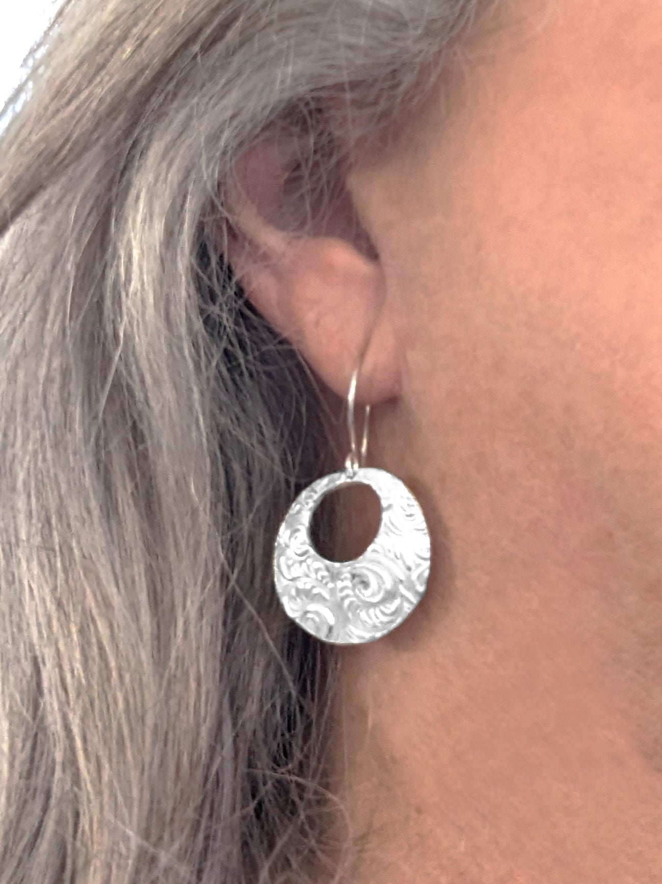 Shiny circular domes of highly textured silver dangle jauntily from your happy ears!